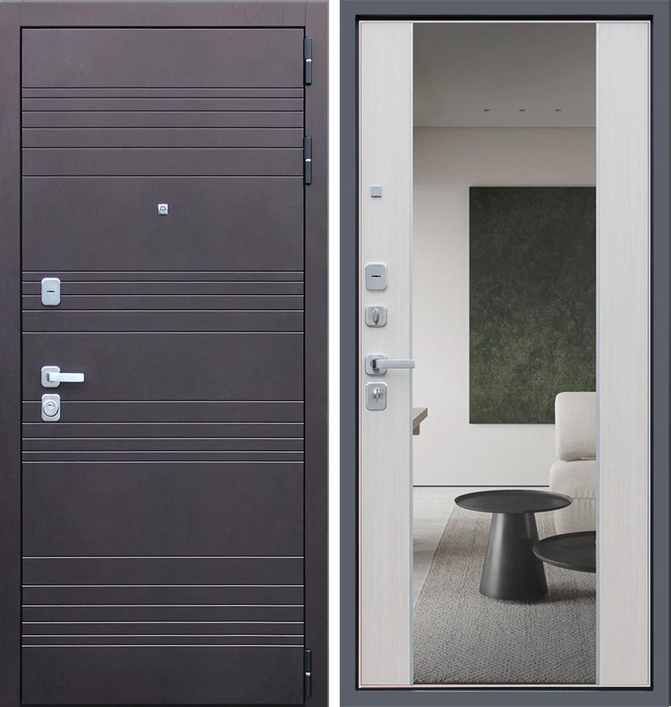 Надежная входная Дверь Дуэт с зеркалом премиум класса по цене 47 885 руб. Большая толщина стали защитит от проникновения в ваш дом, квартиру или коттедж. Используется очень качественная фурнитура: замки, цилиндры, ручки, защелки. Покрытие и отделка двери изготовлено под внимательным контролем производителя. Дверь имеет долгий срок службы и гарантию.